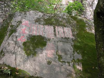 山后空地上突兀一石,不“飞”也奇。这块石头是善卷洞的宝贝。因为它是古代学者考察善卷洞的记录,是善卷洞抗日历史的见证。